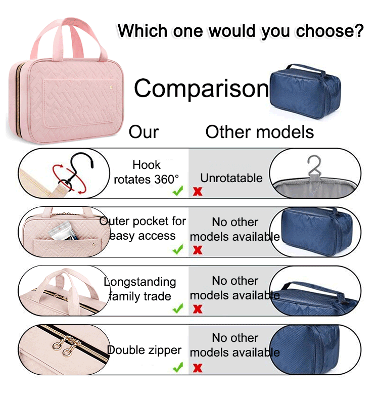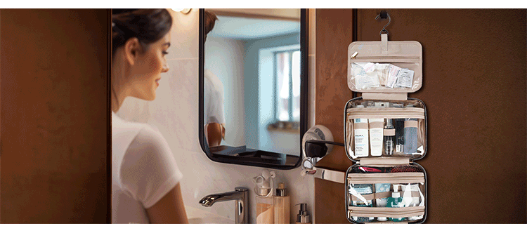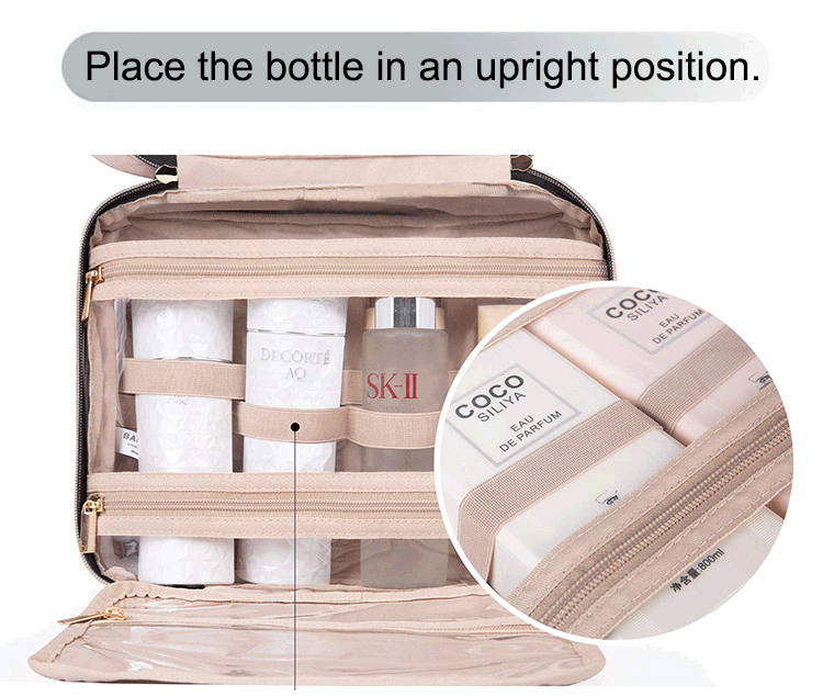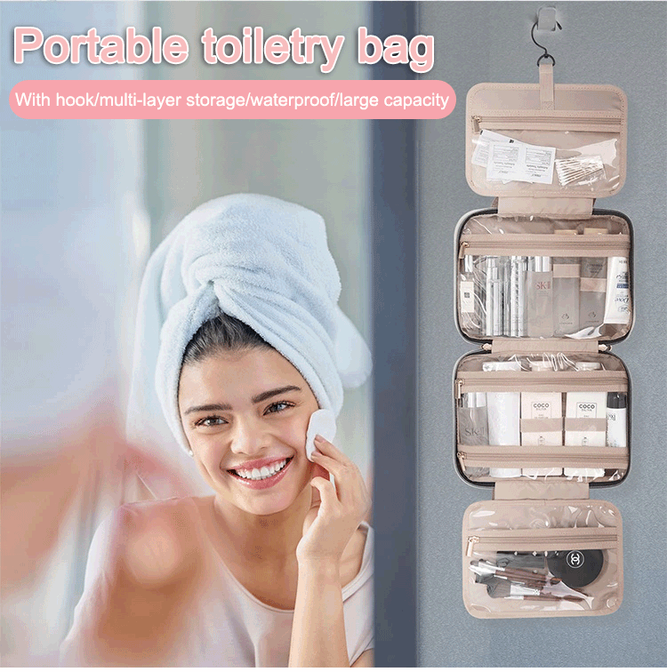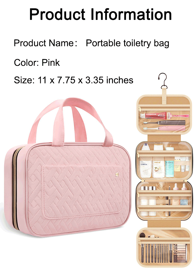 Portable cosmetic bag travel toiletry bag with hook